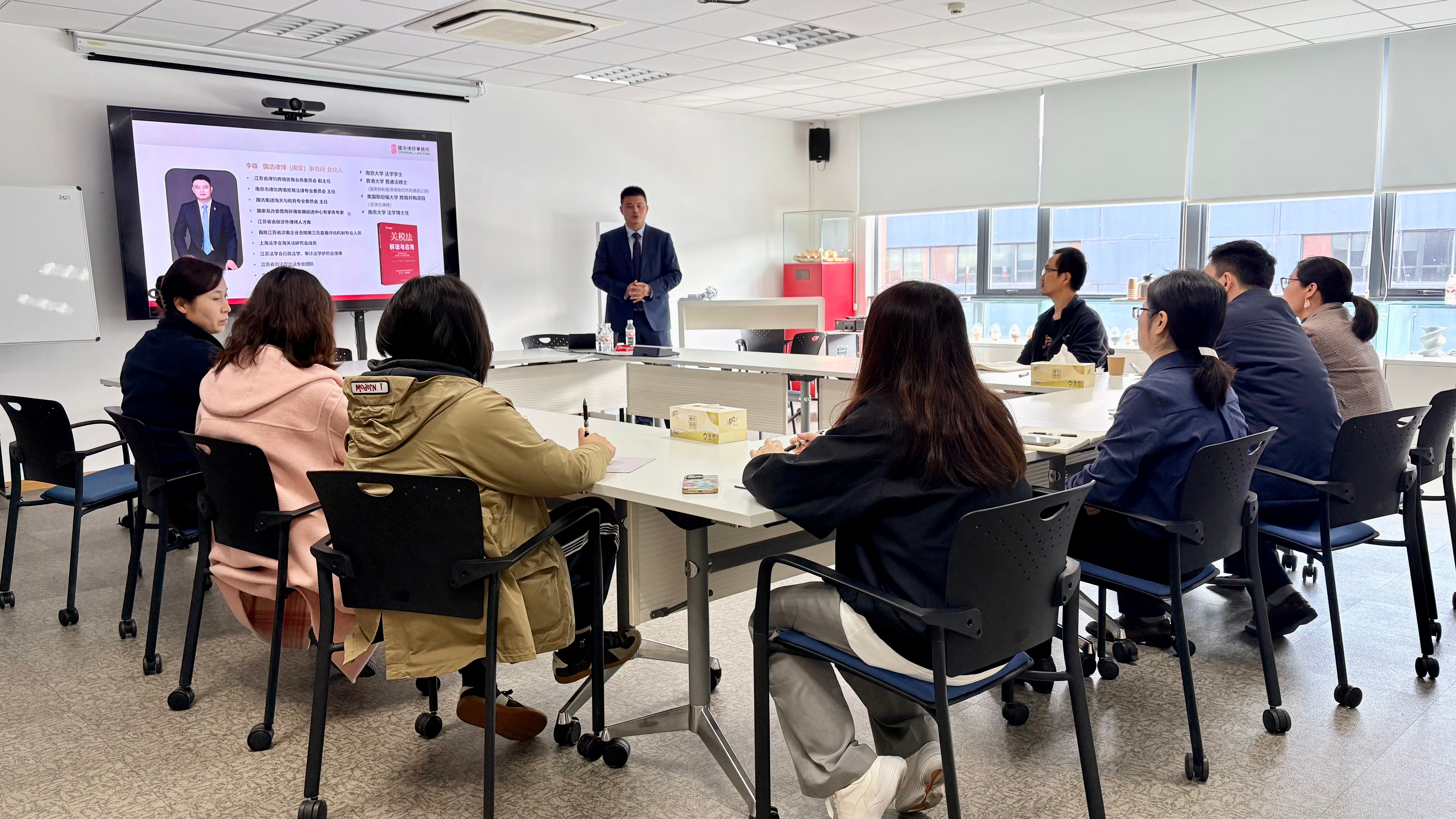 商会走进会员企业开展跨境贸易法律专题培训 为助力会员企业深入了解跨境贸易中的法律问题,提升企业合规运营能力,11月11日,省进出口商会特邀请国浩律师(南京)事务所合伙人、江苏省律协跨境贸易业务委员会副主任、南京市律师协会跨境贸易法律专业委员会主任李繇律师,赴会员企业科倍隆(南京)机械有限公司开展专题授课。企业相关负责人及业务骨干参加了本次培训。 本次培训李繇律师紧...