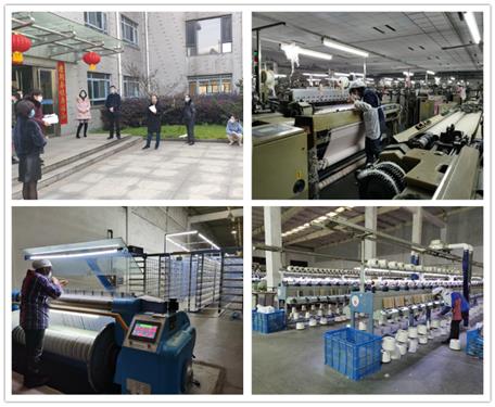 在汇鸿中天嘉晟公司全体员工的共同努力下,公司全面通过了姜堰区政府组织的复工复产检查、验收,已于2月12日上午正式复工。目前,嘉晟公司已有203名员工上岗,各生产车间产能已恢复90%以上,月生产能力可达到80~90万米。