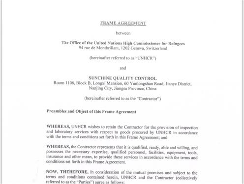 近日,联合国(UN)方面再传喜讯!先施质检凭借自身的口碑,实力,在联合国难民署(UNHCR)检验项目中一举中标,成为联合国难民署(UNHCR)指定检验服务商!