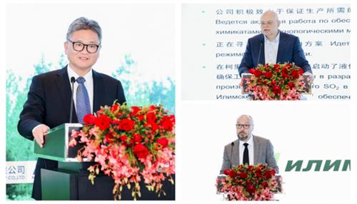 汇鸿中天董事长包振兴发表开场致辞,对长期以来关心、支持汇鸿浆纸业务发展的各位合作伙伴表达了真挚的感谢,并传达了汇鸿将持续做好浆纸供应链服务,合作共赢的信心与承诺。依利姆销售高管切尔尼耶夫(Alexy Chernyaev)、生产高管巴兹尼亚科夫(Aleksandra Pozdnyakov)全面介绍了依利姆企业与产品,传递了企业在森林产品方面具备的领先的竞争力。围绕依利姆2023年投产在即的乌斯奇牛卡项目,汇鸿浆纸介绍了中国进口牛卡的市场情况。