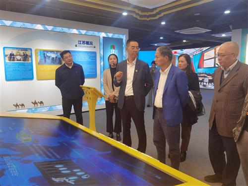 笪家祥会长一行首先参观了江苏中亚中心,细致了解了江苏中亚中心的功能布局、运营模式、服务内容以及在促进中国与中亚地区贸易往来中所发挥的桥梁纽带作用,对江苏中亚中心的建设成果和运营成效有了直观且深入的认识。