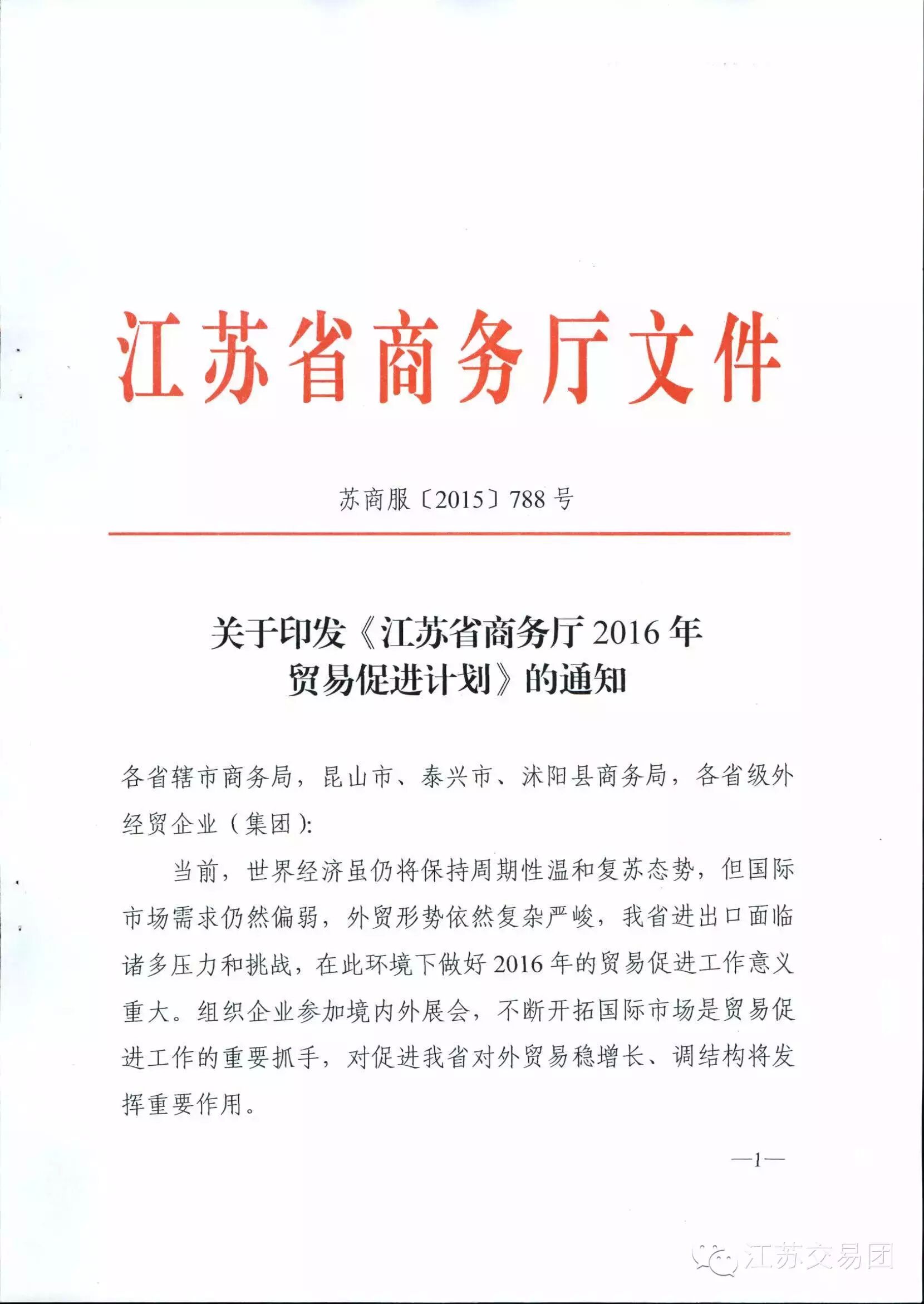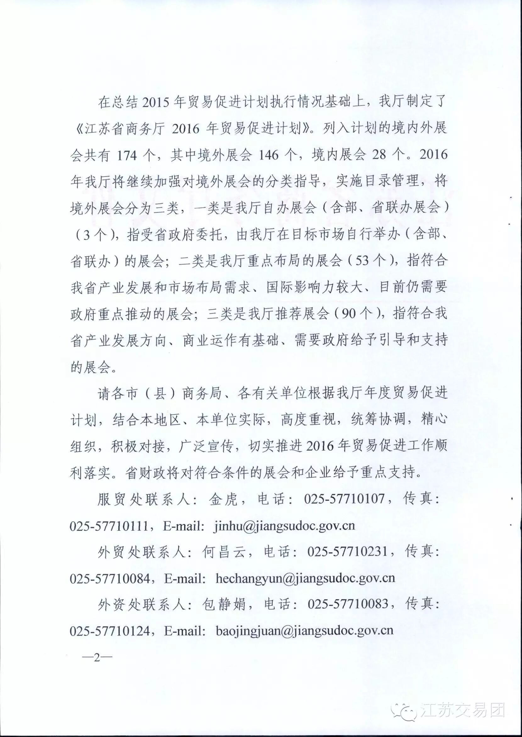 关于印发《江苏省商务厅2016年贸易促进计划》的通知