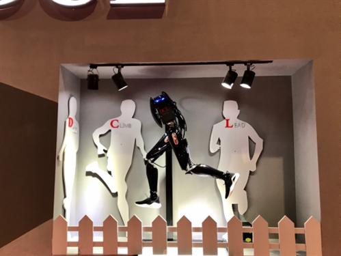 运动产品品牌馆橱窗展示,科技、品牌理念DCL的解说、设计等打光、机器人道具的视觉冲击,把此品牌注重科技产品的理念传达非常强烈。