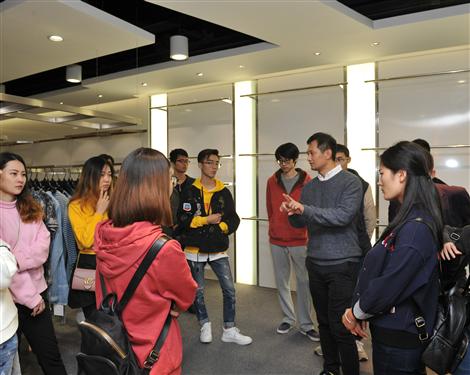 在服装展示中心,参观团艺术设计学专业学生对陈列的针织上衣,特别是对吊染和扎染服装制作工艺表示出浓厚兴趣。设计中心主任赵亚平、设计总监韩兆礼先后就服装制作流程进行了详细介绍。通过对鸿祺厂裁剪、缝纫和整烫包装车间的参观,参观团成员对服装成衣制作流程有了身临其境的直观了解。