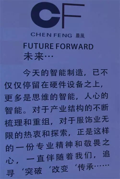 做世界最具竞争力的服装企业,是晨风的远大目标,晨风一直视员工为最宝贵的资源,关心人、尊重人、培训人、发展人,与员工共享发展成果。