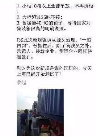 面对新规,已有集卡车队出台了应对措施:1、小柜超过10T以上全部单放,不再拼柜;2、大柜超过25吨不接;3、暂缓接40HQ的箱子,等待国家对集装箱限高的明确说法。